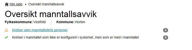 Tallet viser hvor mange kretser kommunen har uten manntallsførte personer. I eksempelet over er det fire kretser uten manntallsførte personer.