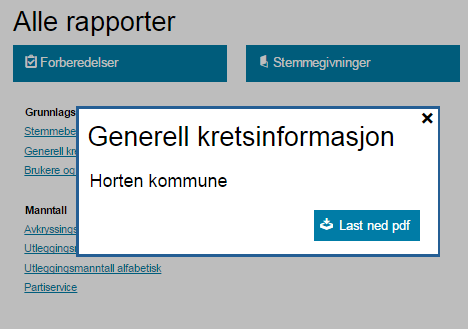 Rapportvalgene til Valgansvarlig kommune under et kommunestyre- og fylkestingsvalg.