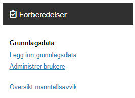 Når dere administrerer brukere kan dere velge å redigere, slette eller opprette ny bruker. For å gjøre dette, trykk på menyvalget "Administrer brukere" under "Grunnlagsdata" på Min side.