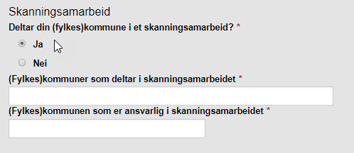 Videre må kommuner som skal delta i et skanningsamarbeid, enten med annen kommune eller en fylkeskommune, oppgi hvem som deltar i samarbeidet og hvem som er ansvarlig for skanningsamarbeidet.
