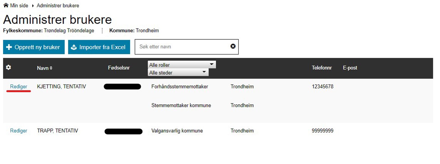 For å redigere brukere må du klikke på "Rediger" til venstre for brukerens navn.