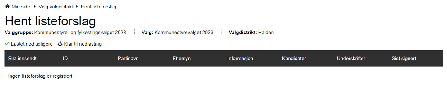 Hvis det fra den elektroniske listeforslagsløsningen leveres inn nye eller endrede listeforslag, så vil endringene dukke opp i denne oversikten.