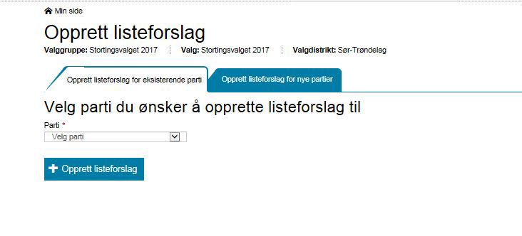 Man må velge om man skal opprette et listeforslag for et eksisterende parti eller et nytt parti.