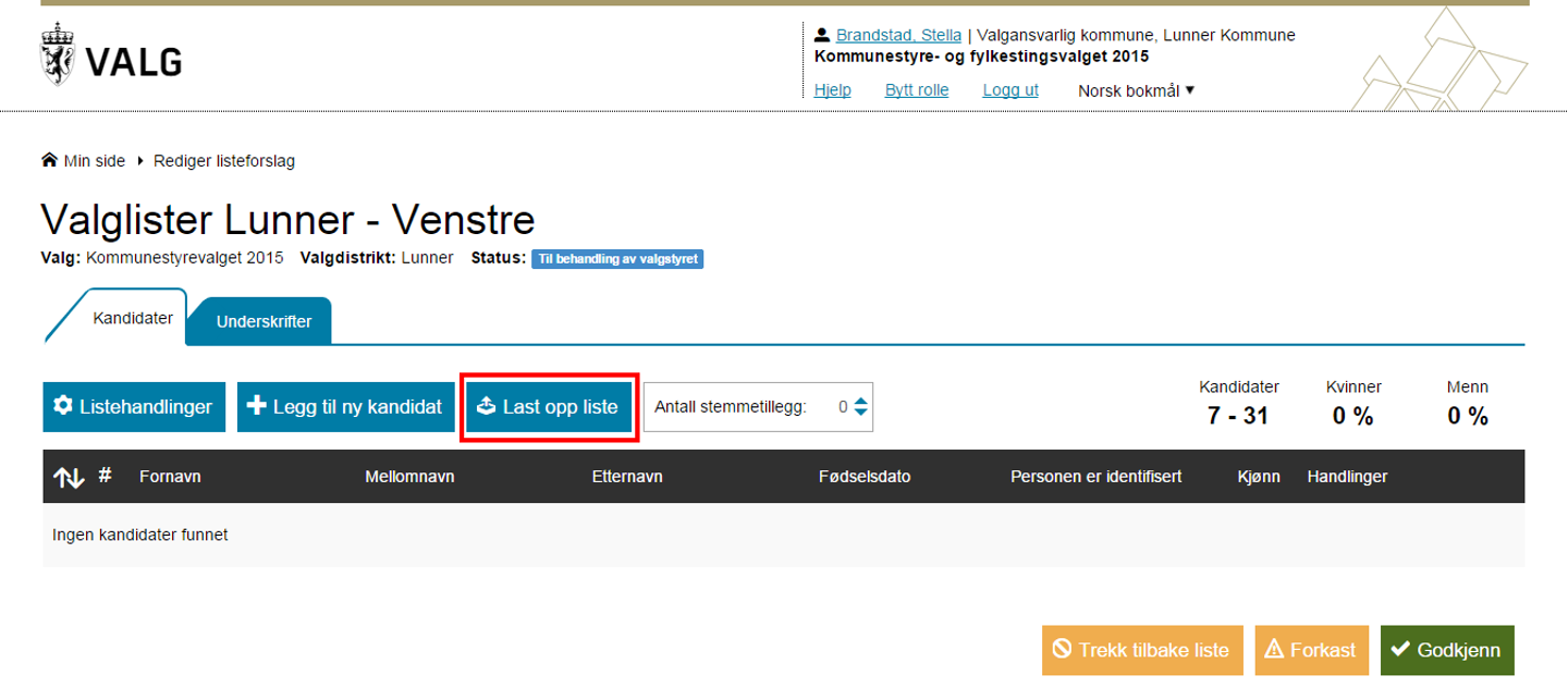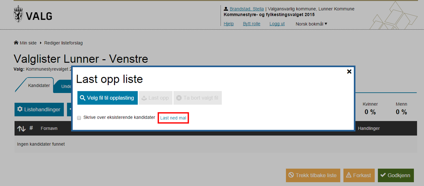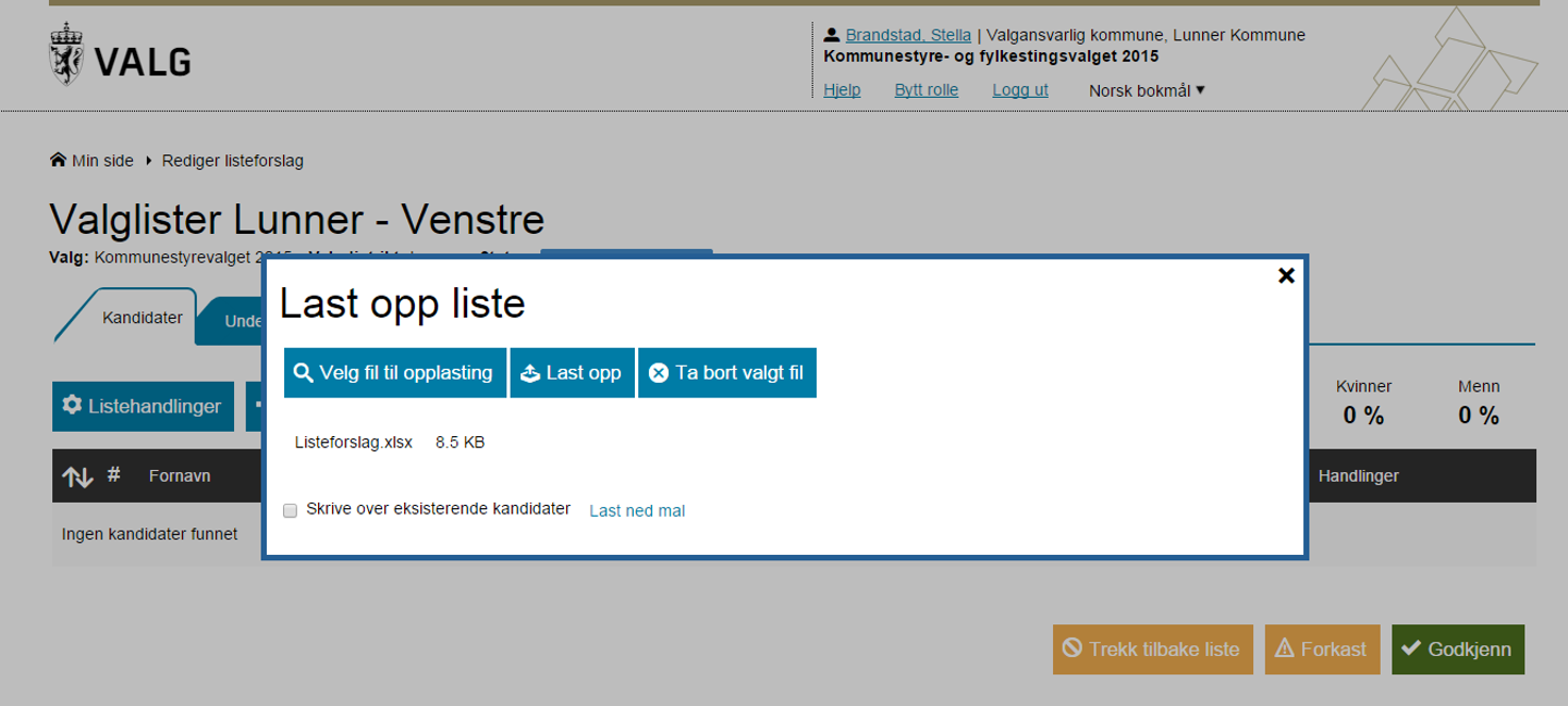 Listeforslag - Mal og opplastingsside for kandidatliste