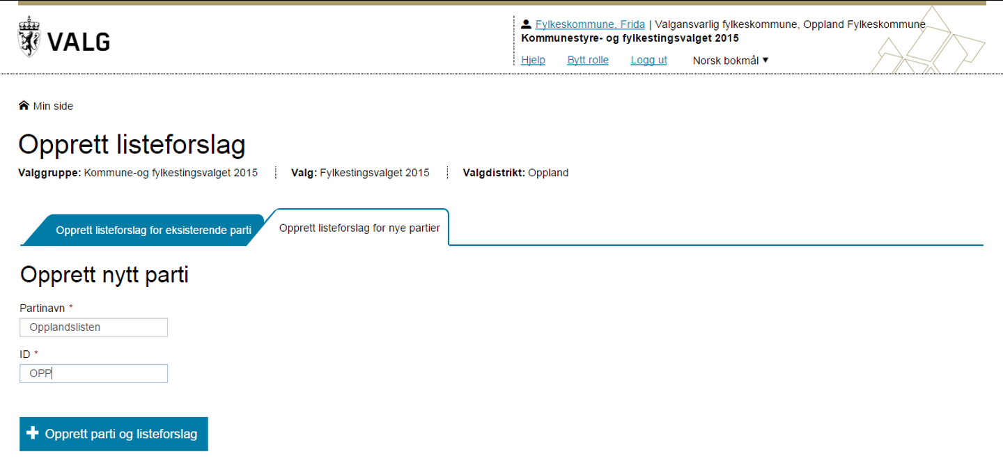 Listeforslag - Listeforslag for eksisterende parti opprettet