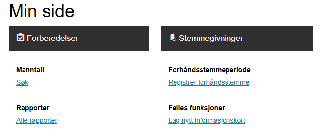 Forhåndsstemmegivning - Menyvalg for forhåndsstemmemottaker