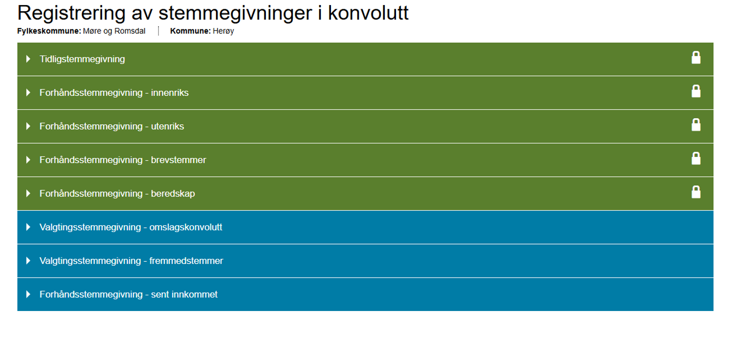 Registrering av stemmegivninger i konvolutt - alle stemmetyper