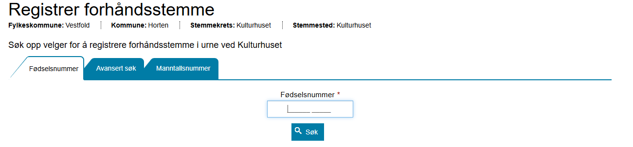 Registrer forhåndsstemme - Søk etter velger basert på fødselsnummer
