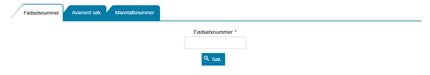 Personen kan søkes opp ved bruk av fødselsnummer eller avansert søk.