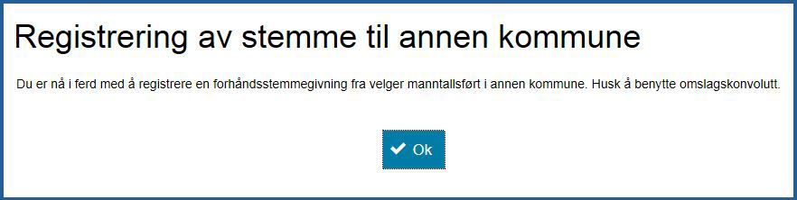 Pop up vindu - Registrering av stemmegivning til annen kommune