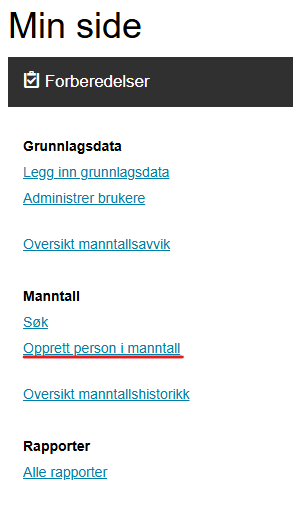 NB! En velger skal kun opprettes i manntallet i disse tilfellene. Velgere som står på særskilt manntallsliste fordi de har sperret adresse skal aldri opprettes i manntallet i EVA.