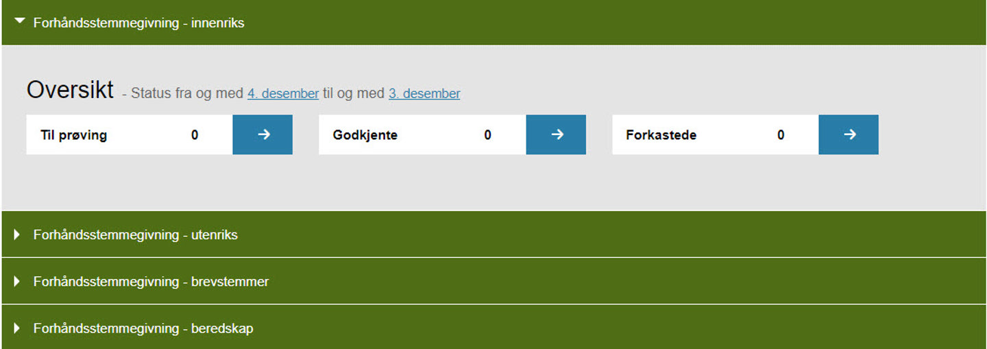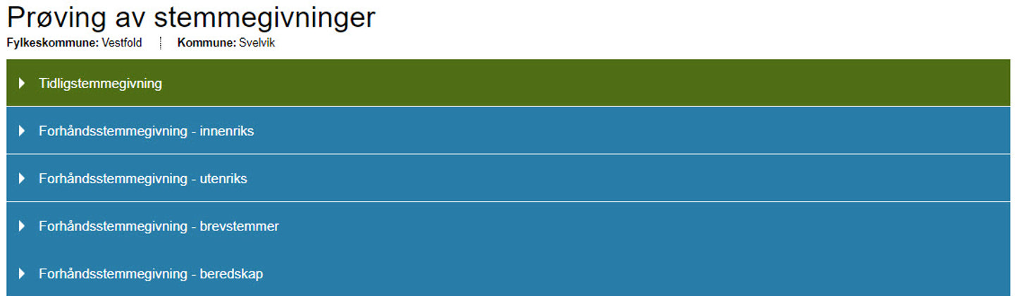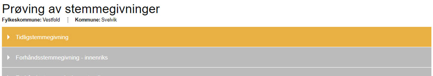 Fase for registrering av tidligstemmegivninger er åpen. Ingen tidligstemmegivninger til prøving