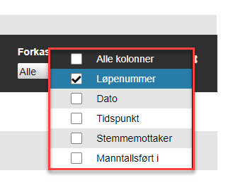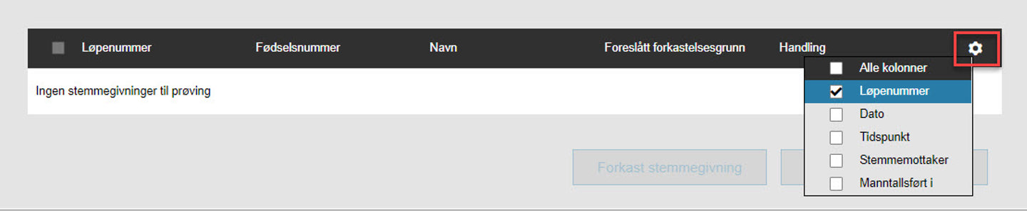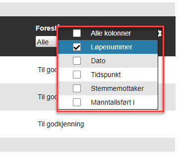 Du kan tilpasse listevisningen med mer informasjon knyttet til hver enkelt stemmegivning ved å klikke på "tannhjulet" til høyre.