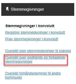 Menypunkt "Oversikt over godkjente og forkastede stemmegivninger"