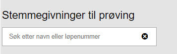 Du kan også søke etter stemmegivninger basert på velgerens navn eller løpenummeret som er knyttet til stemmegivningen. Søket gjøres innenfor den særskilte konvoluttkategorien du står i.